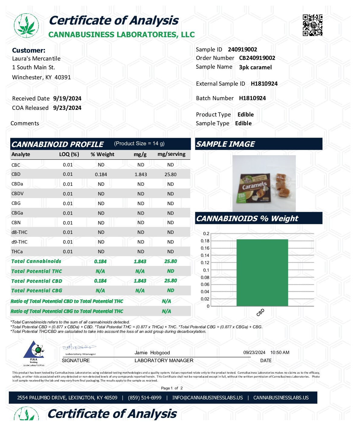 Product Name: Full Spectrum Hemp Caramels